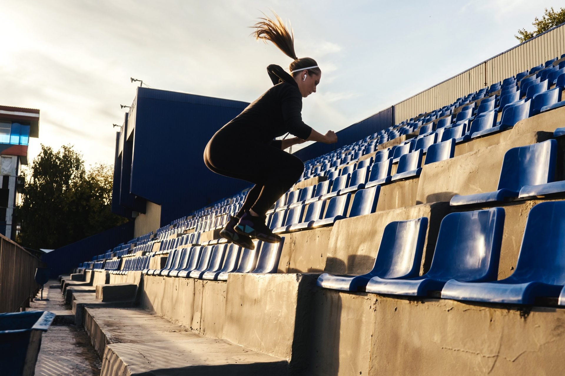 První cvik je naprosto přirozený a nenáročný! Stačí jednoduše chodit nahoru a dolů po schodech lehkým klusem. Můžete to dělat doma, pokud máte schody, nebo ve svém bytovém domě. A pokud preferujete venkovní prostředí, určitě najdete poblíž místo s dostatkem schodů… Pro zpestření cviku můžete: