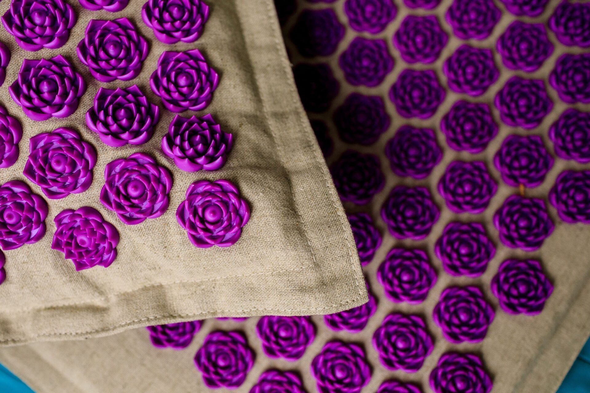 Eine Blumenfeld-Matte ist eine Nervenstimulationsmatte, die auf den Prinzipien der Akupressur basiert. Ihren Namen verdankt sie den kleinen Blüten aus weichem Kunststoff – meist hypoallergen zertifiziertes Silikon –, die die Matte bedecken und deren spitz zulaufende Blütenblätter strategische Körperpunkte stimulieren. Eine Blumenfeld-Matte umfasst in der Regel etwa 200 bis 250 Blüten, auch Stimulatoren genannt. Allein durch das eigene Körpergewicht übt die Matte beim Hinlegen einen gleichmäßigen und gleichzeitigen Druck auf mehr als 5.000 Akupressurpunkte am Rücken aus.