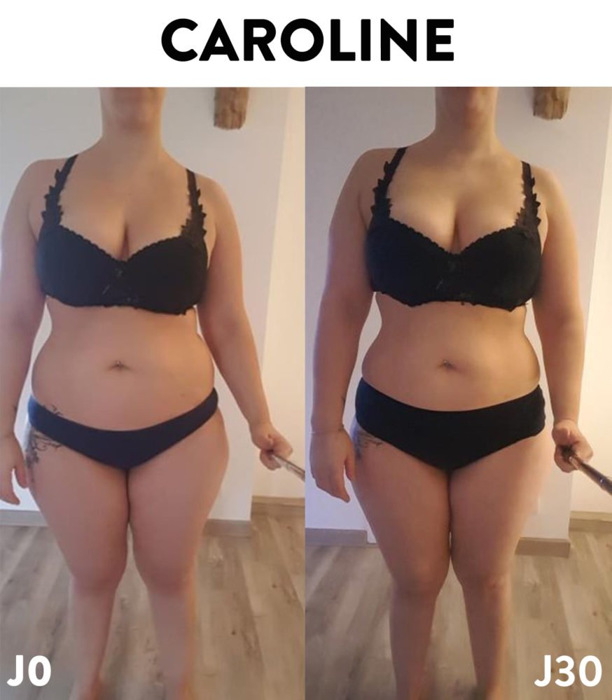 Nach einem Monat Challenge verzeichnet Caroline einen schönen Zentimeterverlust an mehreren Körperzonen. Hier ist ihre Bilanz: