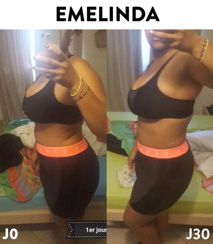Nach einem Monat Challenge verzeichnet Emelinda einen schönen Zentimeterverlust an mehreren Zonen ihrer Silhouette. Hier ist ihre Bilanz: