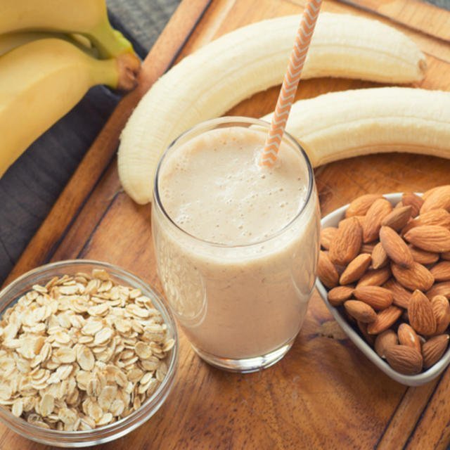 Zubereitung: Für dieses Rezept benötigt ihr einen Mixer. Schält zunächst die Banane und schneidet sie in kleine Scheiben. Mixt alle Zutaten einige Minuten lang – und schon ist es fertig! Gebt ruhig etwas Zimt dazu. Dieser Drink ist dank der proteinreichen Sojamilch, der Banane und der Mandeln ein vollwertiges Frühstück! Dazu passt ein Joghurt mit Haferflocken.