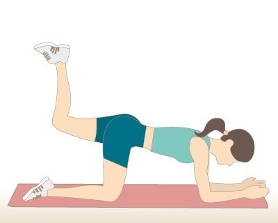 Exercise: Place your knees on the floor, hands flat on the ground, keeping your back straight. Lift one leg and extend it straight behind you, squeezing your glutes.