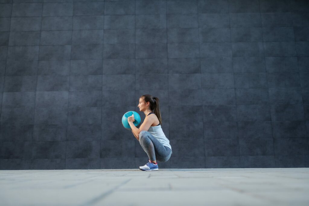 2 o 3 series de 10 sentadillas clásicas con pelota te ayudarán a tonificar tu silueta.