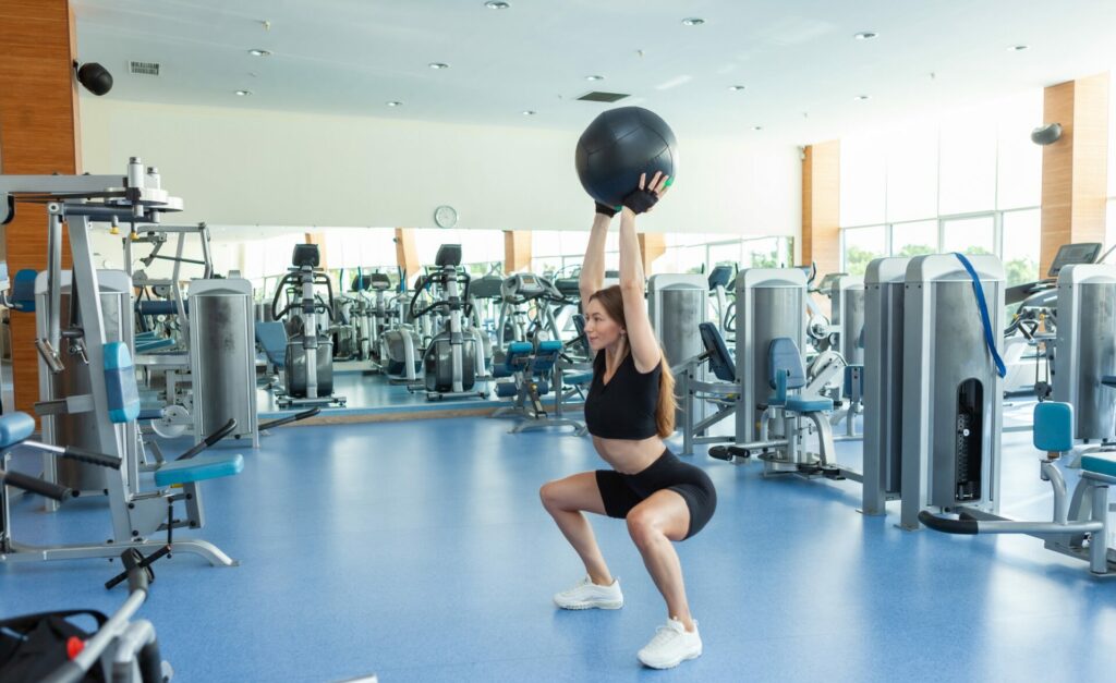 2 series de 20 sentadillas en tu rutina fitness con pelota, y te aseguras unos muslos y glúteos tonificados a tu gusto.