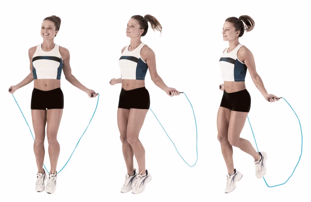 Es el ejercicio ideal y muy simple para quemar calorías. Puedes realizar sesiones de 20 minutos para adelgazar tu silueta y mejorar tu respiración, con pequeños descansos. Este tipo de sesiones equivale a más de 30 minutos de footing. Puedes colocar pesas en tus tobillos si ya está acostumbrada a la cuerda para saltar.