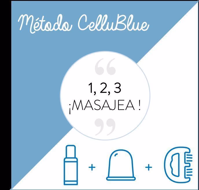 ¡El palpado-rodado y la ventosa CelluBlue deben integrarse a tu rutina de belleza diaria! No hay nada mejor para deshacerte del aspecto piel de naranja incrustado y eliminar tu celulitis. ¡Haz tus preguntas y comparte tus resultados con nuestra comunidad CelluBlue, haciendo clic aquí!