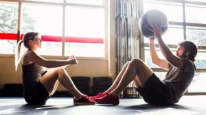Sentadas espalda contra espalda, tomen una pelota y se la van pasando de lado a lado. (4 series de 30 con intervalos de 1 minuto de descanso).