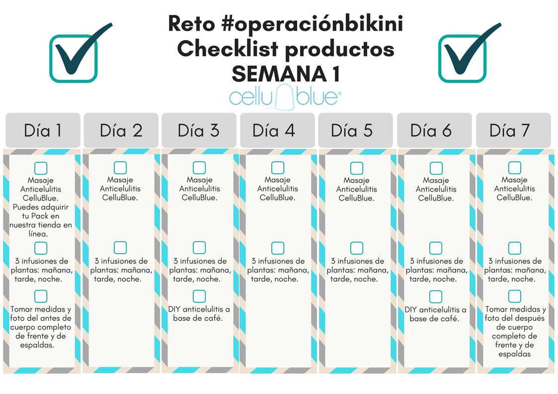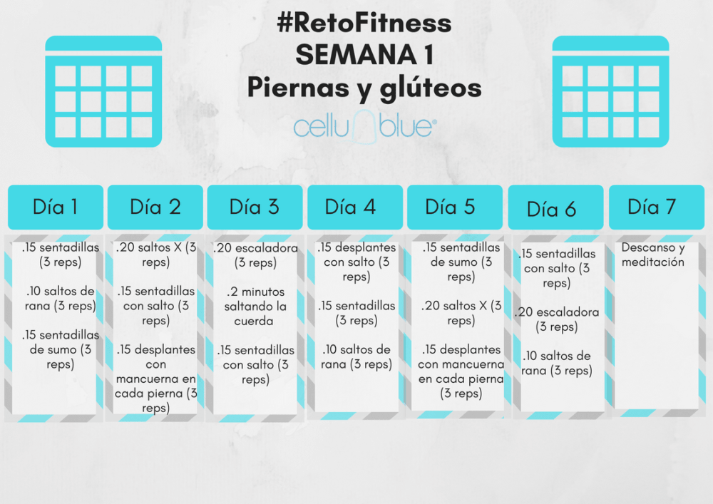 Durante la primer semana nos enfocaremos a trabajar pierna y glúteo; la segunda, abdomen; y la tercera, brazo y espalda. Pero lo más importante, no olvides utilizar tu Kit Anticelulitis Cellublue para obtener mejores resultados y decir bye bye a la celulitis.