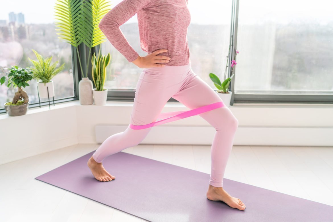 - Placez votre élastique fitness juste en dessous de vos genoux.