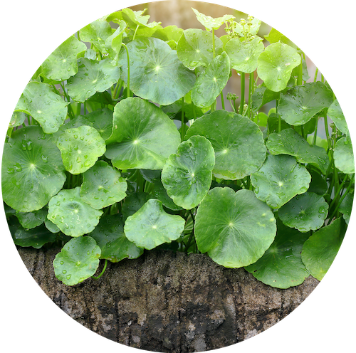 Le gotu-kola est une plante de la famille des ombellifères en provenance d’Inde et de Malaisie. Elle se caractérise par une composition abondante en tanins, en flavonoïdes et en triterpènes. Revitalisant cutané, le gotu-kola est particulièrement recommandé pour le traitement des vergetures.