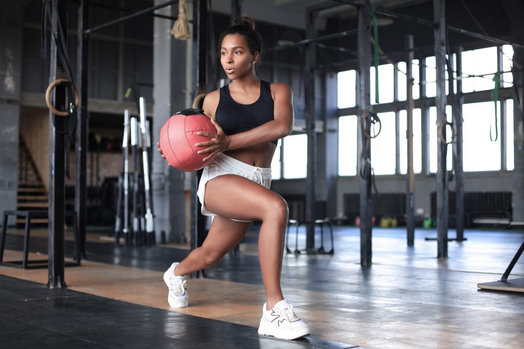 Le principal avantage d’utiliser un petit ballon de fitness pour réaliser des fentes, c’est qu’il permet de prendre conscience de ses gestes et de maintenir le dos bien droit.