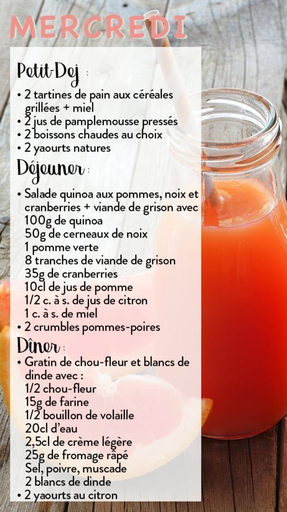 Hello les filles ! Voici votre nouvelle semaine complète de menus minceur anti-cellulite pour retrouver une alimentation équilibrée, saine et variée. Complètement inédits et spécialement élaborés pour vous, retrouvez cette semaine des idées de menus simples et rapides à préparer pour vous régaler à deux ! À vos fourneaux et bon appétit les filles ! ????