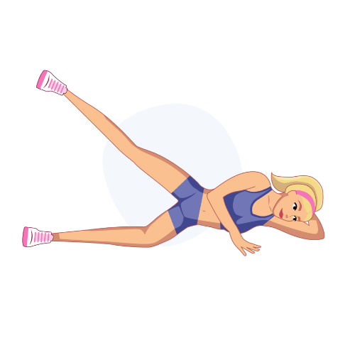 - Afferra gli addominali e solleva la gamba superiore, assicurandoti che sia dritta e in linea con il tuo corpo.