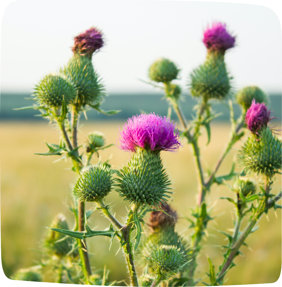 Os cálculos biliares e a insuficiência hepática são o seu terreno, e ele trata deles com mestria! O cardo-mariano age como uma armadura protetora para o seu fígado contra a qual os distúrbios digestivos não resistem. As suas qualidades terapêuticas são reconhecidas há séculos, pois já era utilizado na Antiguidade para tratar problemas biliares. A preparação deste chá para eliminar as toxinas é a seguinte: 3,5 gramas de sementes secas desta planta, (chamadas aquénios), devem ser colocadas a ferver em 150 ml de água. Uma vez pronto, aconselha-se bebê-lo meia hora antes das refeições. Esta bebida é, no entanto, contraindicada para mulheres grávidas ou a amamentar e em caso de obstrução das vias biliares.